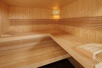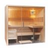 Die Front der Sauna ist komplett verglast, was ein Gefühl von Grösse und Weite versprüht. Speziell Personen, die in beengten Räumen schnell ein wenig unwohl sind, können sich in dieser Sauna sehr wohl fühlen. Die riesige Glasfront vermittelt ein angenehm offenes Ambiente, und trotzdem findet die Saunakabine auch in kleineren Räumen Platz. Zusätzlich zeichnet sich diese Sauna durch die immensen Platzverhältnisse aus.