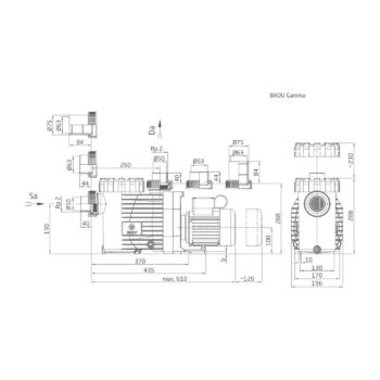 - BADU Gamma 29 und 32 Wassereingang: Saugseite Pumpe hat folgende Anschluss: Ø 75 mm PVC-Rohr.