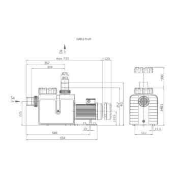 Schwimmbadwasser-Umwälzung in Filteranlagen, aufstellbar jeweils max. 3 m oberhalb oder unterhalb des Wasserniveaus.