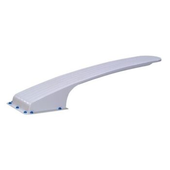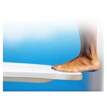 Das Sprungbrett ist aus Polyester und mit Glasfaser verstärkt. Es ist breit und hat eine rutschfeste Oberfläche. Das Sprungbrett weisst eine hohe Beständigkeit gegen Verschleiss, Feuchtigkeit und UV-Strahlen auf.