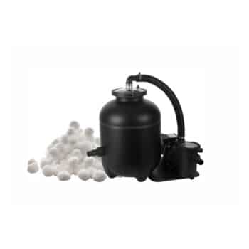 Ein komplettes Filtersystem mit Filterbällen ist ebenfalls enthalten. Beim Filterkugelsystem 300 W handelt es sich um ein einfaches, wirkungsvolles und komplettes Filtersystem, das speziell für kleine freistehende Gartenpools mit bis zu 28 m3 Volumen entwickelt wurde. Das System richtet sich an alle, die sich ein kostengünstiges Filtersystem mit extra hoher Filterleistung sowie einfacher Bedienung während der Badesaison wünschen. Das Filtersystem wird inklusive 1200 g der revolutionären Filterkugeln von SWIM & FUN geliefert, die weit mehr und kleinere Partikel und Verunreinigungen aus dem Badewasser filtern als herkömmliche Sandfilter. Mit ihnen wird das Wasser besonders klar. Nach dem Ende der Badesaison können die Filterkugeln sauber gespült und ggf. im folgenden Sommer im Filter wiederverwendet werden. Das System kann mit einem normalen Poolschlauch (32/38 mm) betrieben werden.