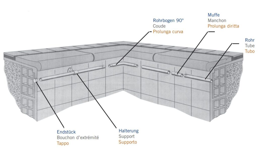 Mit dieser Wandhalterung aus V4A Edelstahl können Sie Ihre Haltestangen an der Wand Ihres Schwimmbeckens befestigen.