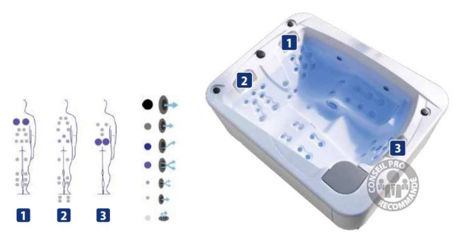 Die Whirlpools der Serie OceanDreams, die in Europa entworfen und hergestellt werden, bieten dem Benutzer optimalen Komfort. Die Ausstattung sowie die angebotenen Zusatzoptionen sind mit modernster Technik ausgestattet. Jeder integrierte Sitz- und Loungesessel wurde vor allem auf die Bedürfnisse des Körpers zugeschnitten. Die verschiedenen Wasser- und Luftdüsen sind strategisch so positioniert, um die empfindlichsten Körperstellen zu behandeln. Die Intensität und Richtung der Düsen können nach den persönlichen Präferenzen eingestellt werden.
