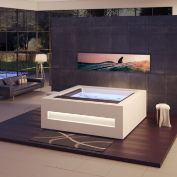 Mit dem Touch Panel können Sie alle möglichen Funktionen rund um Ihren Whirlpool regeln: die Temperatur (26-40 °C), die chromatische Reihenfolge in der Farbtherapie, die Betriebsart, die Programmierung der Filterzyklen. Der Speicher im Touch Panel speichert vorkonfigurierte Funktionen. Auch für Sicherheit ist gesorgt: Mit dem Touchpanel haben Sie Zugriff auf das Selbstreinigungssystem für die Rohrleitungen, den Frostschutz, das automatische Ausschalten der Pumpen und des Projektors und Diagnosemeldungen. Sofern Sie das optionale Audiosystem auch wünschen, kann die Musik über das Touch Panel gesteuert werden (Lautstärkeregelung, Musikwahl in der Wiedergabeliste, etc.).