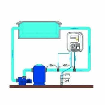 Hierbei handelt es sich um eine automatische Dosierpumpe um den pH-Wert einzustellen und zu kontrollieren. Die Dosierzeit wird in Abhängigkeit von der Abweichung des pH-Wertes des Beckens vom idealen pH-Wert angepasst. Die Pumpe arbeitet in 3 Stufen, so dass die Notwendigkeit der Injektion oder Nichtinjektion von Korrekturmitteln gewährleistet ist. Die Pumpe wird in den Filterkreis integriert und ist für Becken bis 150 m3 geeignet.