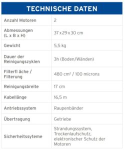 Durch seinen grossen Griff und sein äusserst geringes Gewicht gewährleistet er eine einfache Handhabung in jeder Situation. Der Filterkorb wird einfach von der Oberseite des Reinigers entnommen – für eine effiziente Reinigung ohne Kontakt mit dem Beckenschmutz. Er profitiert von der modernen Zyklustechnologie, diese garantiert eine Saugleistung ohne Verlust.